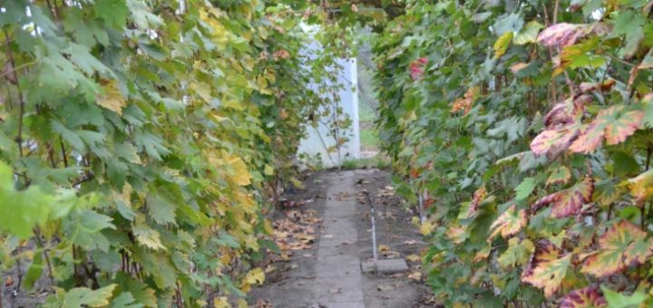 W tunelach jesiennie. Pozostało na krzewach już niewiele gron. Huragan zerwał folię na starszym tunelu ale już jest założona nowa. Czekam na mrozy aby przyciąć wstępnie i uformować krzewy na przyszły rok. Nowszy tunel...