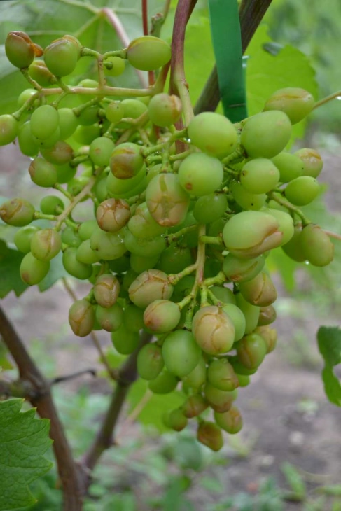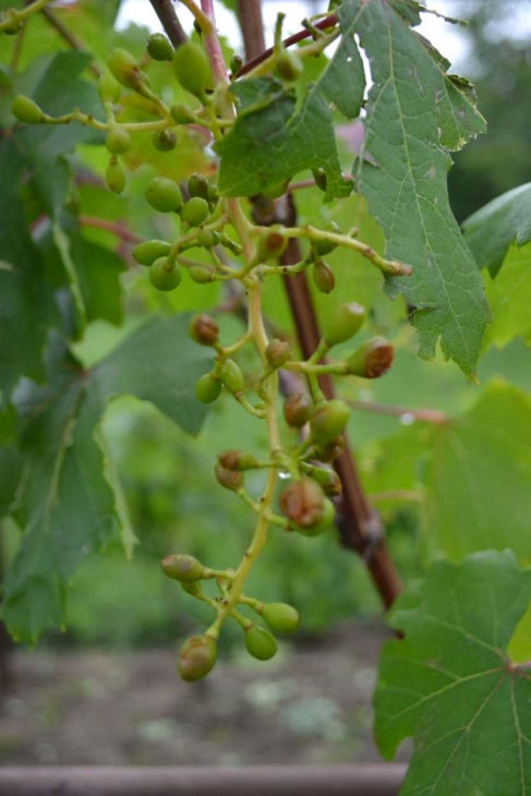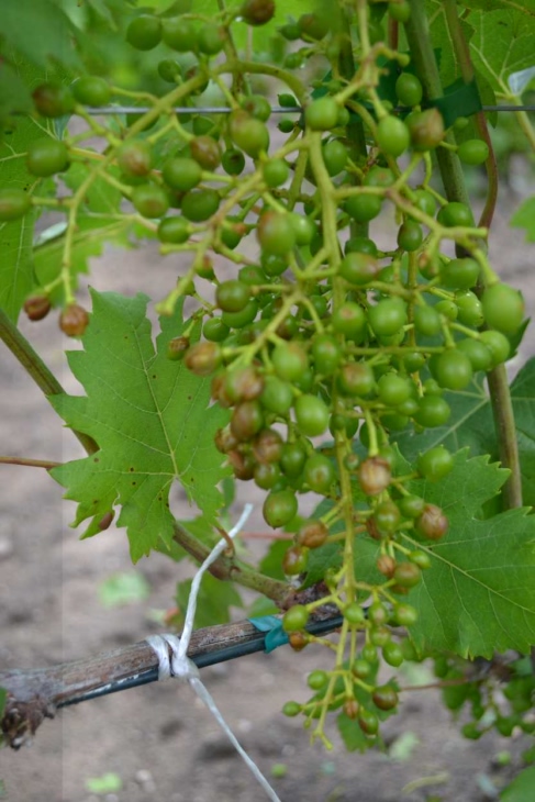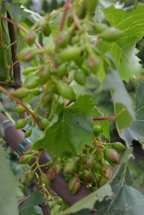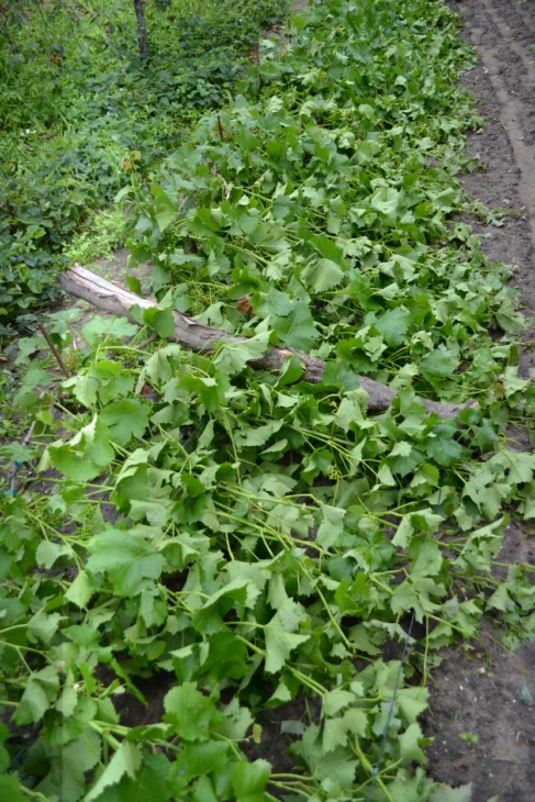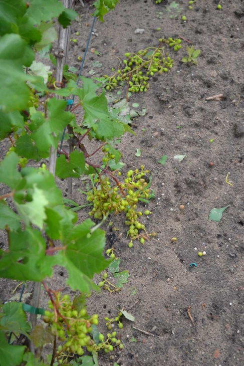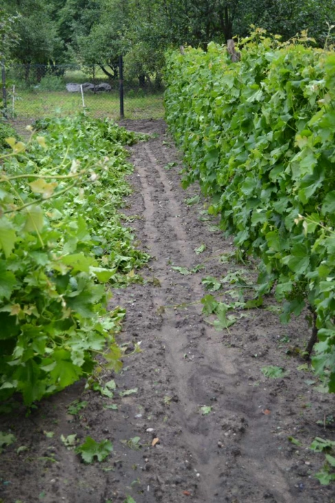 Uprawa winorośli to ciągła walka z przeciwnościami. Przerabiałem już przymrozki wiosenne i jesienne, choroby grzybowe, ślimaki, mrówki, przędziorki, osy, szerszenie, różne ptactwo w tym głównie kosy i szpaki, krety, nornice no ale gradu jeszcze nie miałem. No to mam. Wczorajsza burza z gradem w 10 minut zniszczyła w większości to co rośnie w gruncie. Cała praca poszła na marne. Teraz wycinam te popękane jagody aby potem popryskać Topsinem i choć trochę uratować. Kolejna robota i czasami przychodzi zwątpienie. Dobrze , że choć tunele wytrzymały i tam jest dobrze, przynajmniej na teraz.
