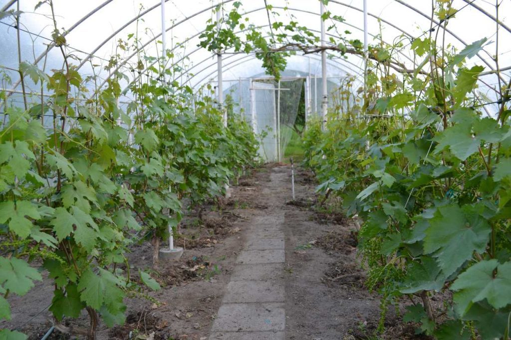W tunelach od paru dni zaczęło się kwitnienie. Dzisiaj dopiero to zauważyłem. Jako pierwsza rozpoczęła moja najwcześniejsza odmiana jaką jest Garod. Bardzo ją cenie właśnie za wczesność oraz bardzo dobry smak – słodki z przyjemnym muskatem. Zawiązuje po 3-4 kwiatostany na latorośli. Jestem już w połowie redukcji a ciąg dalszy nastąpi.