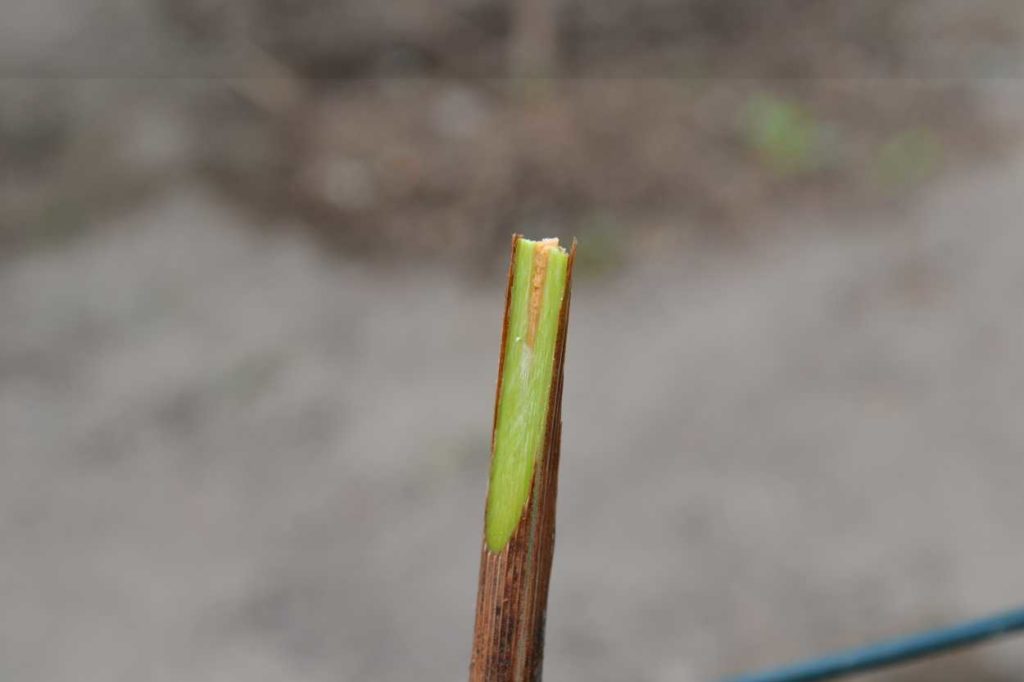 Sztobry tnę na jednooczkowe odcinki i dolną końcówkę zacinam w klin. Ważne aby nóż był bardzo ostry bo płaszczyzna cięcia powinna być równa.