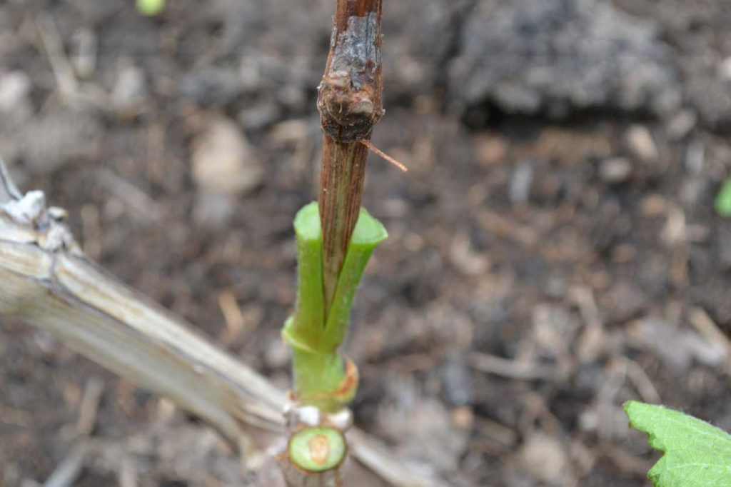 Tak przygotowany zraz wkładam w naciętą latorośl.
