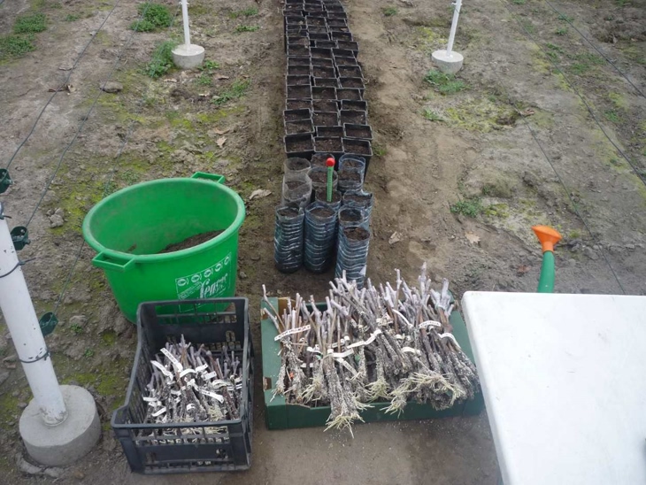 Przy okazji sprawdziłem jak się mają patyki dla których zabrakło doniczek. Zaraz po ukorzenianiu z ciepłego podłoża zadołowałem je w tunelu gdzie grunt był jeszcze zimny. Chyba przeżyją.
