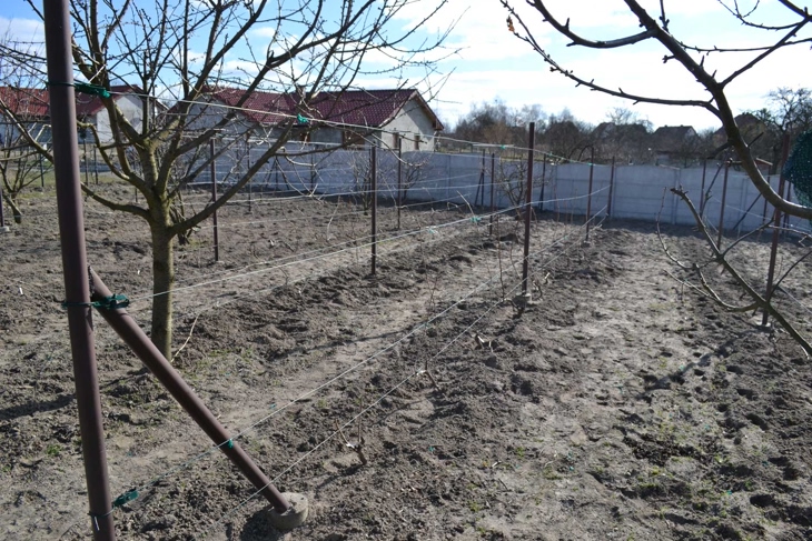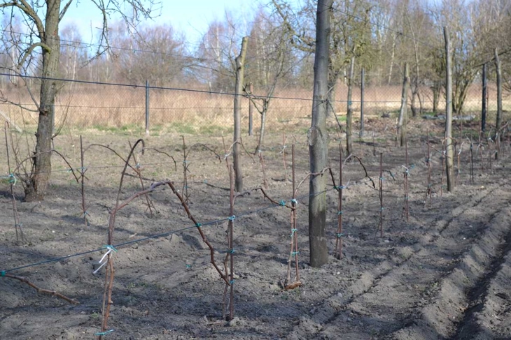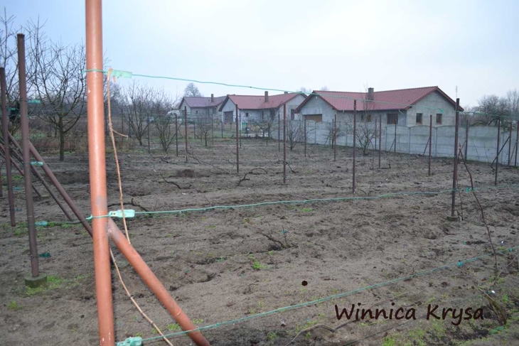 Wszystkie krzewy są już na drutach. Przycięte, przypięte i gotowe do oprysku olejem, który zrobię za parę dni. Tam gdzie poprawiałem cięcie łozy strasznie płaczą, pozostałe różnie. Całą winniczkę wyrównałem glebogryzarką.