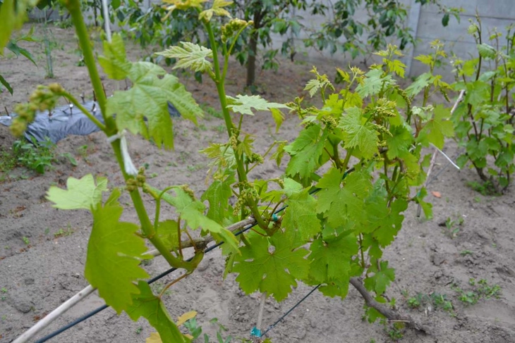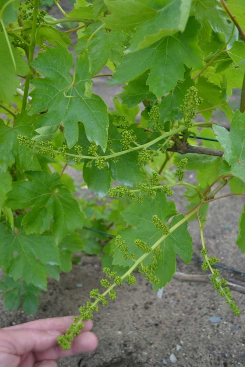 Od przeszło tygodnia zaczęło się kwitnienie na przerobówkach. Pierwsza zakwitła NN a zaraz po niej Solaris, Seywal i Roesler. Kwitnienie dalej trwa. Na deserówkach może kilkanaście odmian jest w początkowej fazie kwitnienia. Niestety ochłodziło się oraz pada deszcz i wszystko stanęło. Latorośla za to ostro ruszyły i robi się już dość gęsto i zielono. Opryski profilaktyczne robią swoje i chorób na razie nie ma.