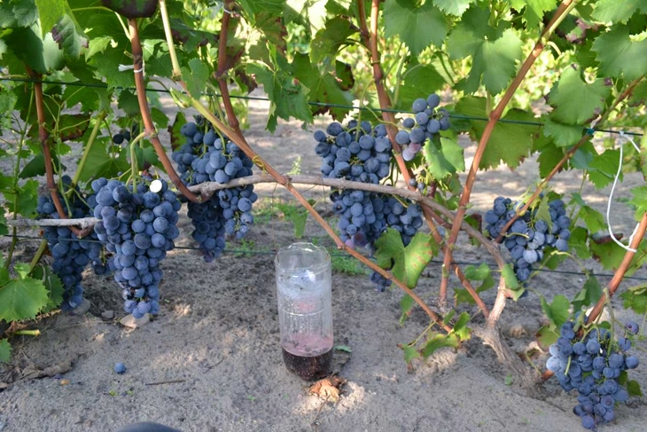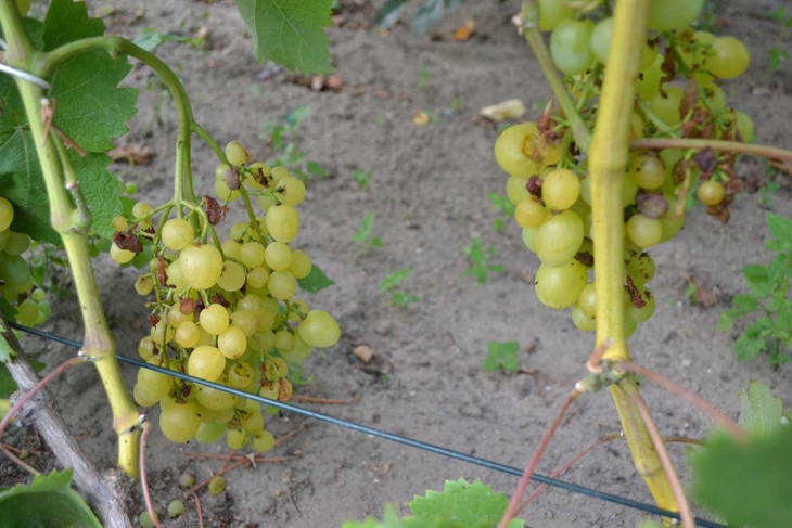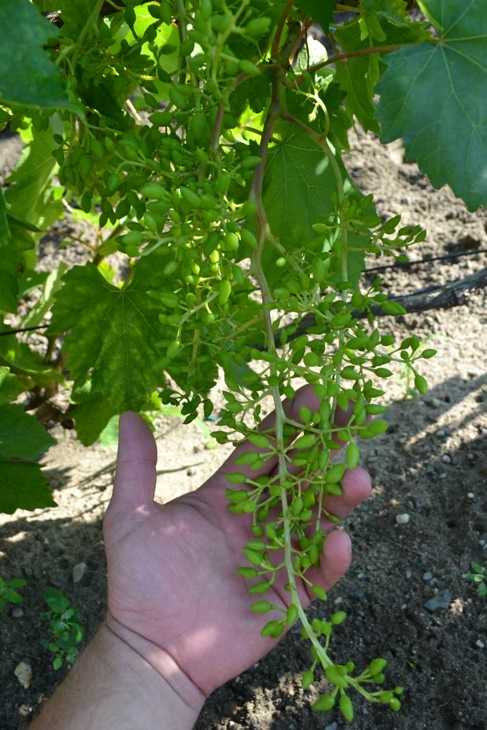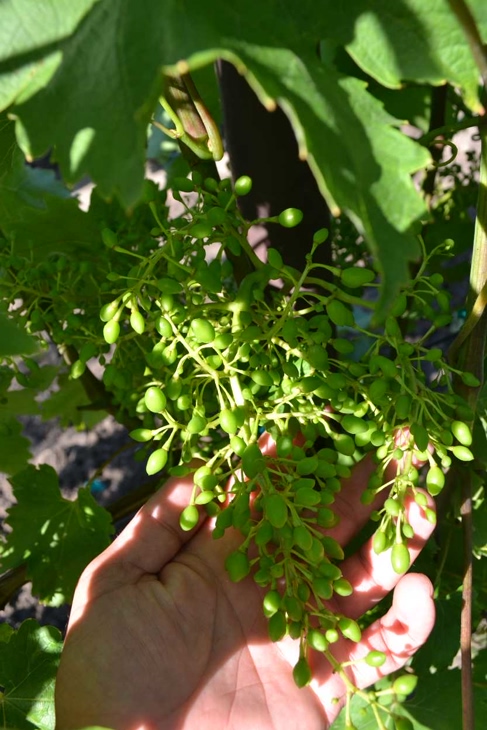 Sezon jest jednak bardzo trudny. Wydawało się, że brak majowych przymrozków pozwoli cieszyć się pięknymi zbiorami. Jednak w uprawie gruntowej czeka na nas wiele innych zagrożeń. Najpierw zimno przed kwitnieniem a potem upały w jego trakcie. Wiele kwiatostanów tego nie wytrzymało i mniej lub bardziej zrzuciło zawiązki. Jednak to nie koniec. Gdy tak przetrzebione grona zaczęły rosnąć przyszła kolejna fala upałów i dobiła sporo odmian. Jagody ugotowały się na krzewach. Tylko nieliczne przetrwały bez większego uszczerbku takie anomalie pogodowe. Lancelot. Aleksa, Arkadia, Regina, Orion, Dołgożdannyj, Sierafimowskij, Sfinks, Konsuł i pare innnych wygląda całkiem przyzwoicie. Niestety większość jest bylejaka. Obecnie zaczyna się dojrzewanie i kolejne problemy. Plaga os i innych owadów robi sobie na nich ucztę. Do tego jeszcze ptaki, które wyżerają co się tylko przebarwi i jest pełen obraz jak łatwa i przyjemna jest uprawa winorośli.