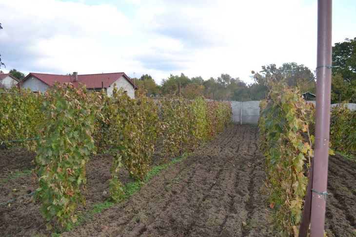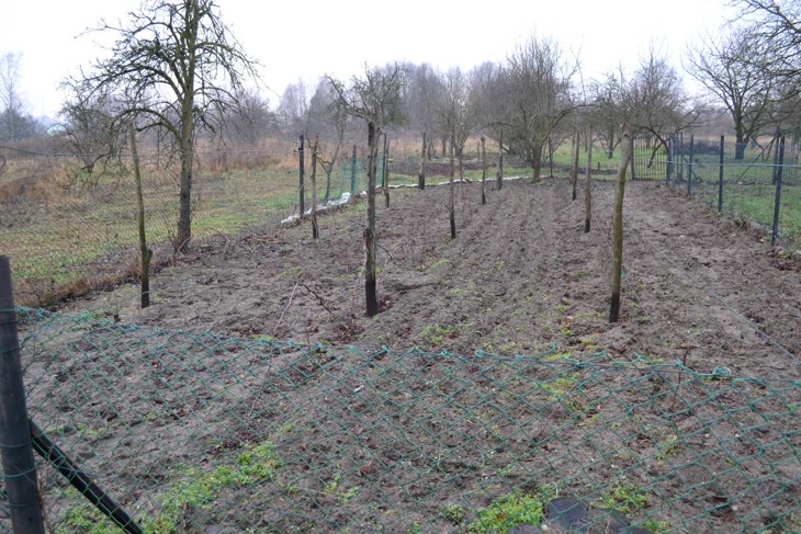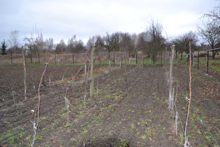 Winniczka przygotowana do zimy. Wstępnie przycięta i oczyszczona. Przed glebogryzarką sypnąłem kredą, siarczanem magnezu i boraksem. Magnezu i boru mam spore niedobory i jeszcze planuję w przyszłym sezonie nawożenie dolistne, Z winniczki zniknęło kilka niepotrzebnych drzew owocowych.