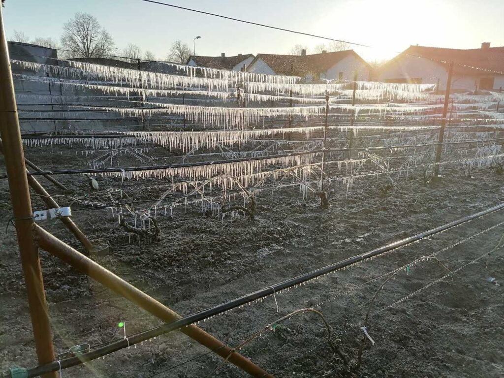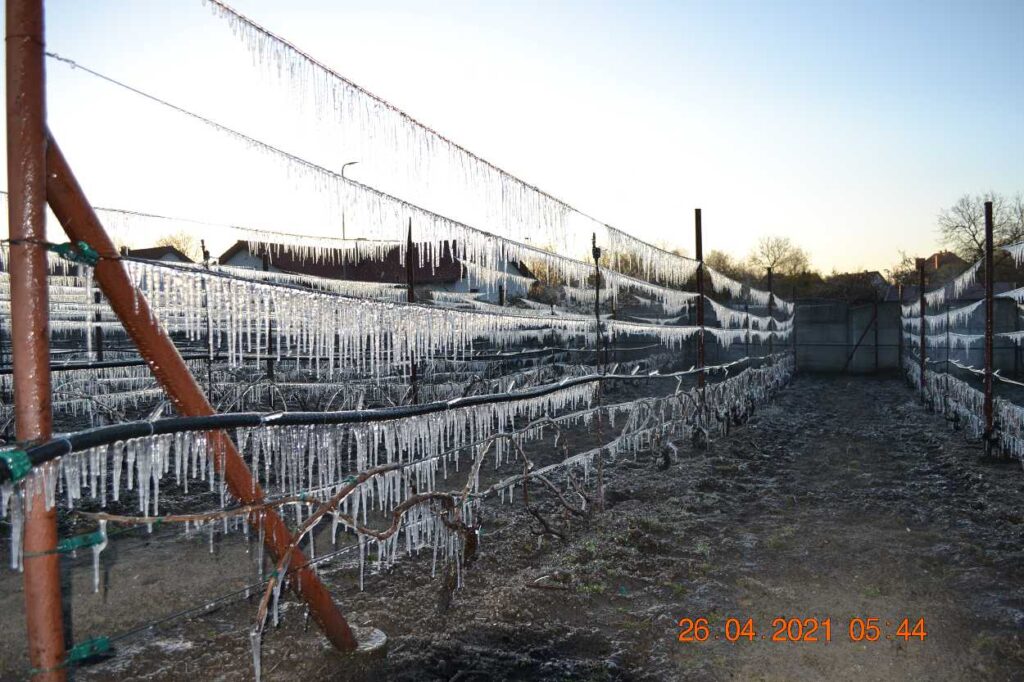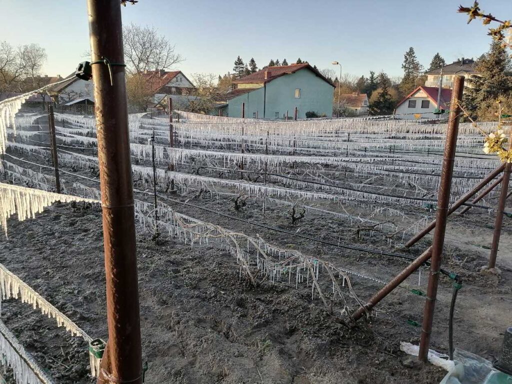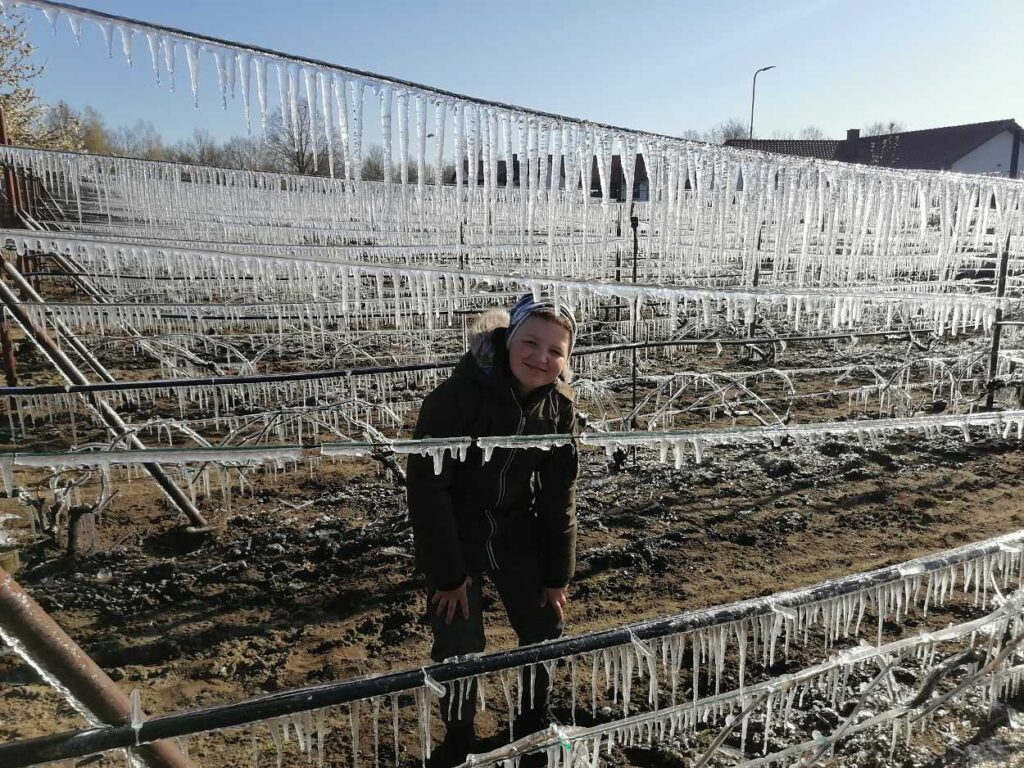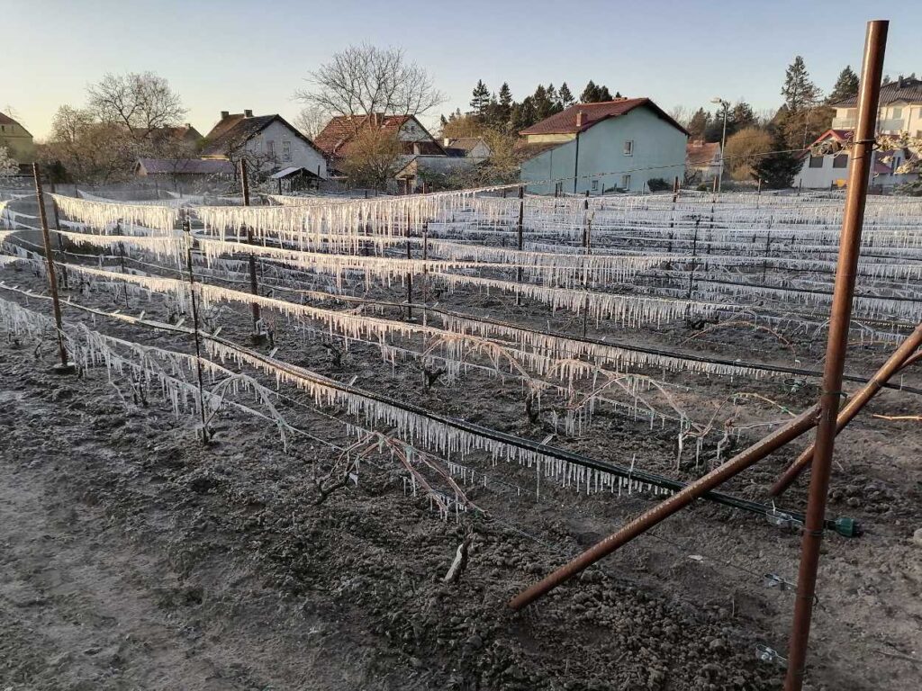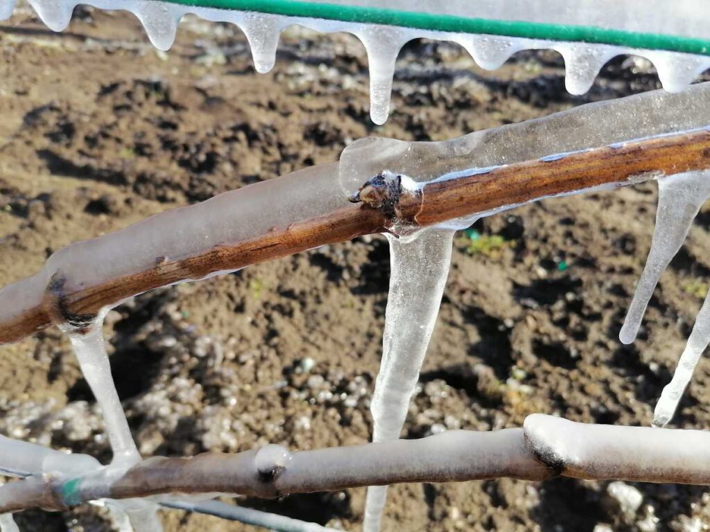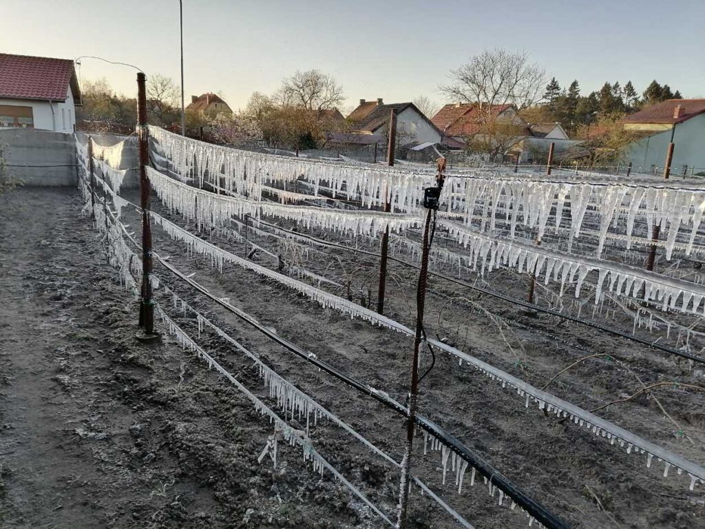 Walka z przymrozkami tym razem w kwietniu jak co roku była niezbędna. Zaczęło się 26 kwietnia gdzie nad ranem temperatura spadła do około -5C, następnego dnia było podobnie a trzeciego już przymroziło tylko -2C. Choć wegetacja w tym roku jest mocno opóźniona to najwcześniejsze odmiany w gruncie miały już otwarte pąki i musiałem działać. Testowałem po raz pierwszy flippery i musiałem wszystko na bieżąco regulować. Wcześniej skalibrowałem czujnik temperatury, który lekko oszukiwał wskazania. Przy wskazaniu -0,4C było ta naprawdę OC. Usatawiłem bezpiecznie na 1C ale już o 22-ej instalacja ruszyła i aby nie zbankrutować obniżałem temperaturę startu tak realnie do -1C bo pąki w większości dopiero ruszają (zraszacze nie zamarzały bo wyżej było cieplej). To był jednak błąd bo te już otwarte z listkami częściowo wymroziło. Generalnie udało się ocalić bardzo dużo i jestem zadowolony. Co ciekawe w pierwszym dniu różnica temperatur pomiędzy czujnikiem na 2m i 60cm była około 2C. Na górze 2C to na dole 0C. W drugim dniu różnic temperatur prawie nie było.
