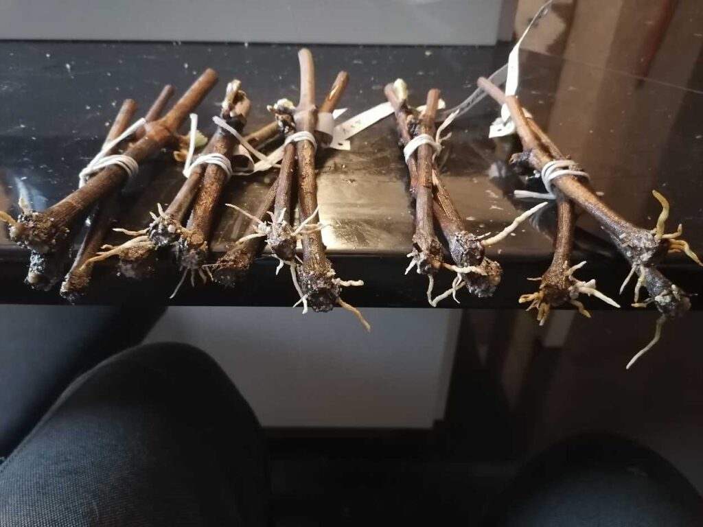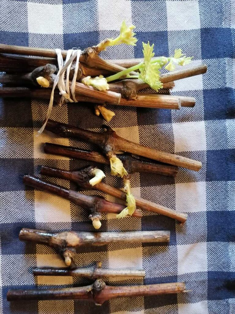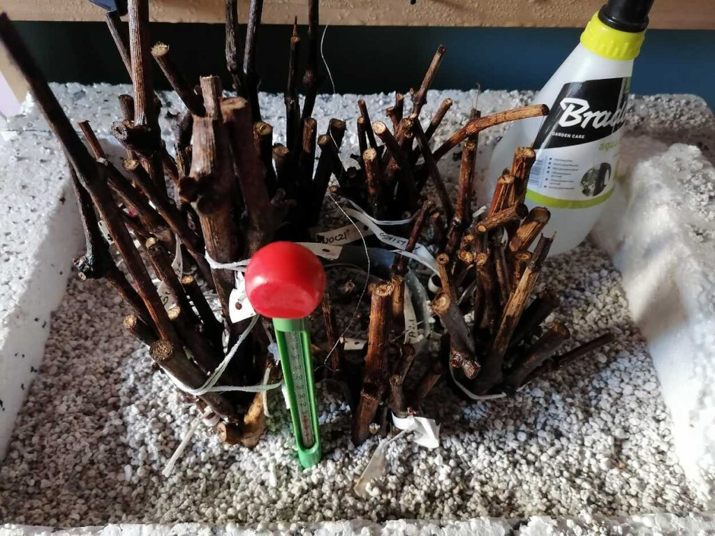 Trochę z nudów, trochę z ciekawości, zrobiłem parę zimowych eksperymentów z winoroślą. Pierwsza rzecz jaką chciałem sprawdzić to jak przezimowały pąki winorośli po ciężkiej zimie. Miałem w tym roku -21C mierzone na wysokości 2m od gruntu. Krzewy prowadzę bardzo nisko i tam zapewne mróz był jeszcze większy. Uciąłem kilka jednooczkowych sztobrów z różnych odmian z tuneli i gruntu.